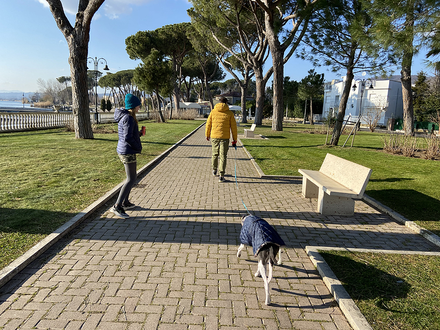 Restoranuose vien vietiniai ir sodina visus naujai atėjusius šalia, nors salių yra ne viena, aš sakau, bet tai vien italai čia, Aistė sako - jo, dar ir po stalu italas. Ogiukas mūsų iš Italijos veislyno.