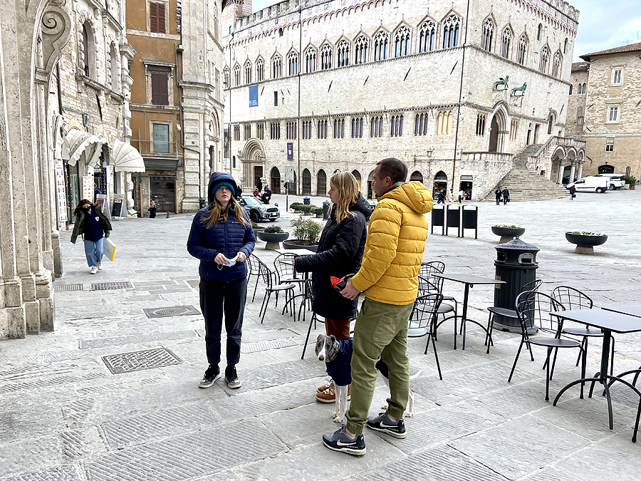 Susikuitę vyniojamės į Perugia - nenorėjau kažkaip į didelį miestą, bet likau patenkinta. Turi gražią pagrindinę aikštę ir dar nauja patirtis - pasivaikščiojom senoviniu akveduku, kuris paverstas į gatvelę pėstiesiems su tiltukais vedančiais įėjimais į namus. Mūsų mažė užsimano tokio namo. Prisėdam sušilti kavinukėje, prie gretimo staliuko išgirdom lietuvę.