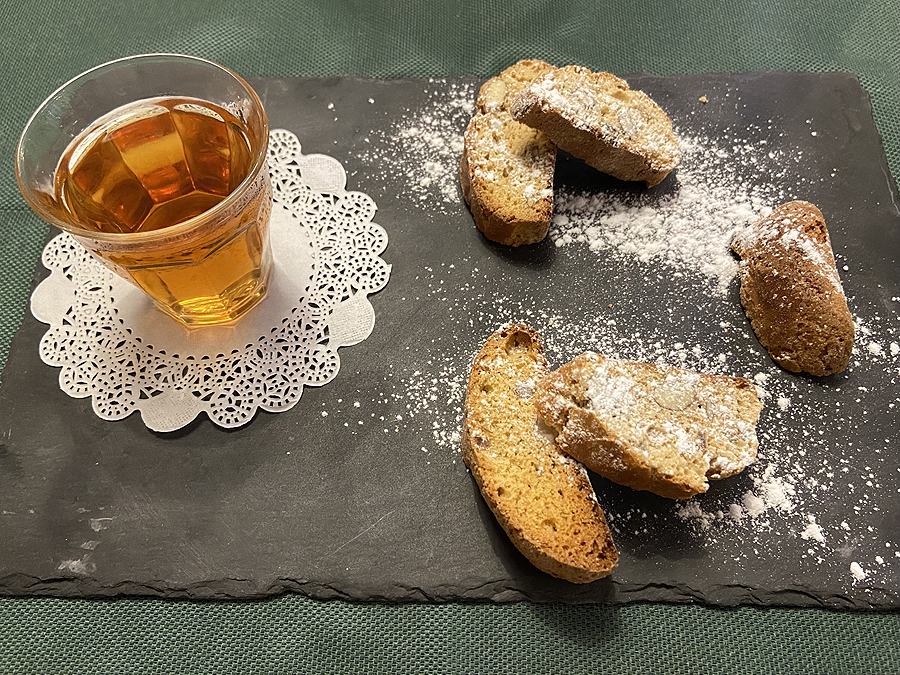 Skubam pavalgyt, nes jau po 14 val., tad lendam į pirmą pasitaikiusį restoraną, dirbantį iki 15. Vaikai savo tagliatelle makarus su mesos padažu gyrė, bet mūsų su vyru višta ir antis iš dienos meniu buvo sausi, išdžiuvę, aš jų beveik ir nevalgiau, šuniui puse sumaitinom. O kainos beveik šveicariškos… Desertui atneša kietų džiuvėsių su likeriuku - tradiciniai vietiniai "cantucci" sausainiai su migdolais, nieko ypatingo.