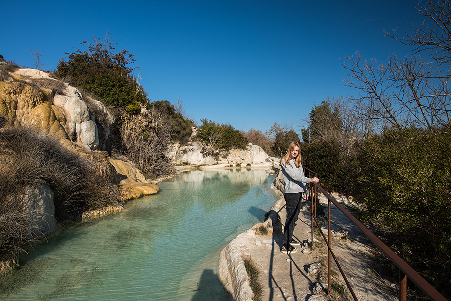 Toskana grasėja savo karštųjų versmių natūraliais baseinais - terme. Pats top taškas Terme di Saturnia mums buvo tolokai, nenuvažiavome... Lankome kitą, ne tokį įspūdingą, jame vandens iki kelių ir visai jis ne šiltas... Vyras dėl to ir nesusižavėjo idėja važiuoti iki Terme di Saturnia, įsivaizdavo kažką panašaus... O ir aš sunkiai įsivaizdavau mus su maudymkėm tokiame ore...
