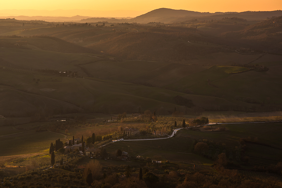 Pravažiuojam nuo Montalcino iki Montepulciano, atsisveikinu su kaimo sodybėlėm ir kiparisais vakarinėj saulėj paskendusiose kalvose, grožis…