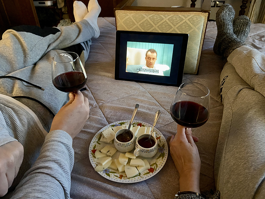 Apsišopinam maisto pusryčiams ir vakarą leidžiam namuose. Šalta, saulė dingo, nėr noro slampinėt. Nueinam tik vakarop picų vaikams ir užsirezervuot restorano poryt vakarienei.